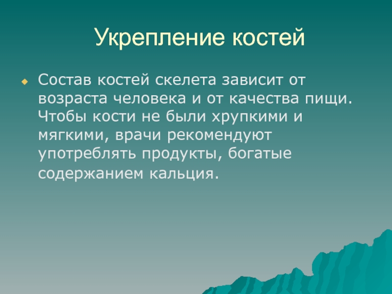 пищи. Чтобы кости не были хрупкими и мягкими, врачи рекомендуют употреблять продукты, богатые содержанием кальция.