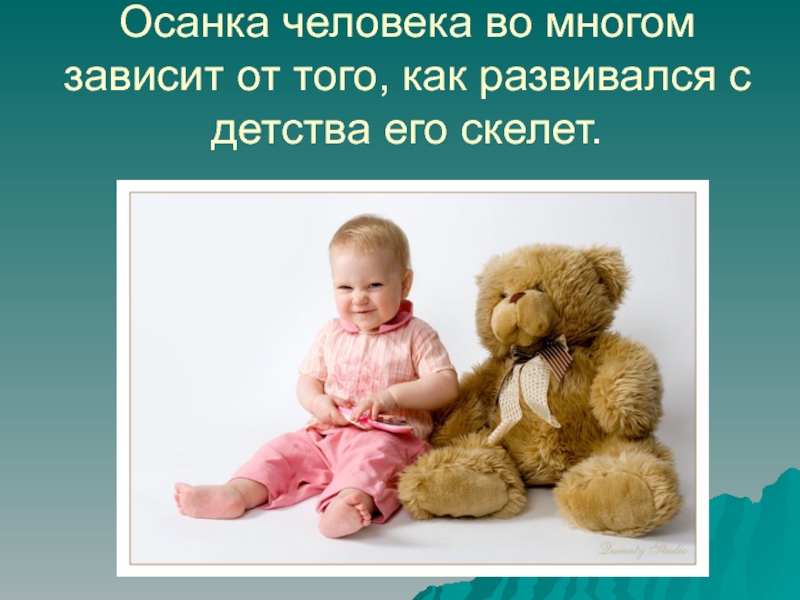 Слайд 2Осанка человека во многом зависит от того, как развивался с детства