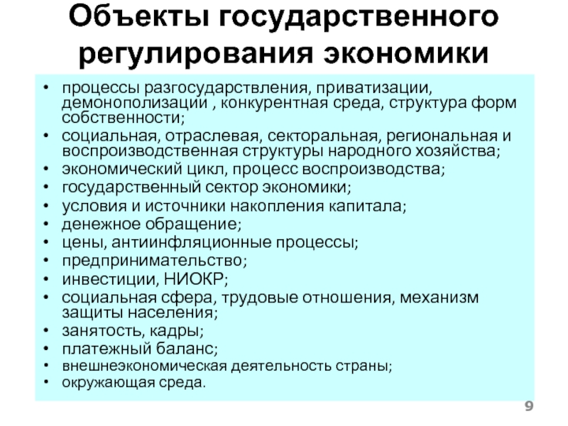 ● регулирование деятельности регионов, отраслей и крупных предприятий в общенациональных интересах;