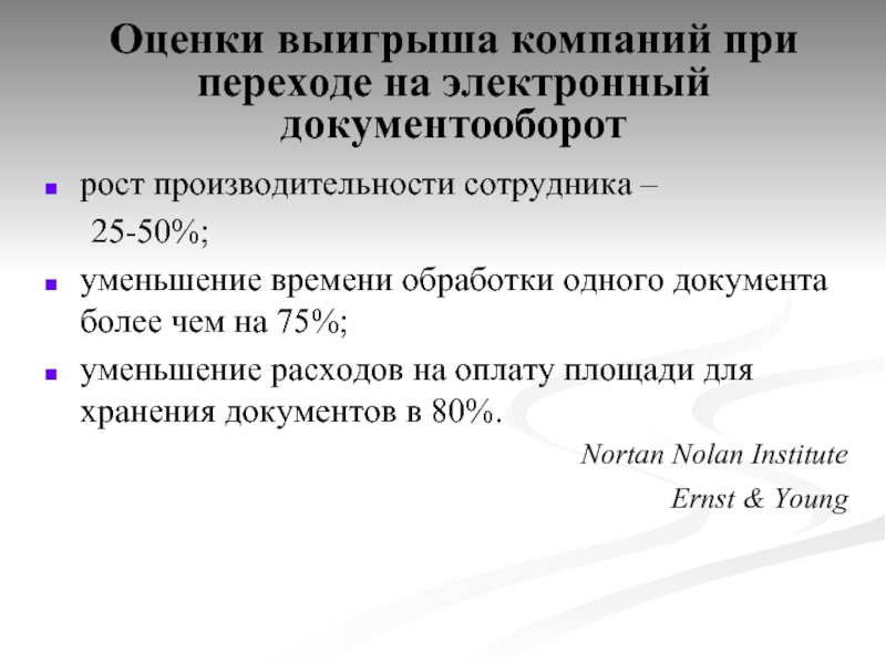 Слайд 35Оценки выигрыша компаний при переходе на электронный документооборот