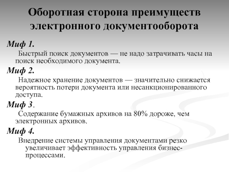 Слайд 36Оборотная сторона преимуществ электронного документооборота