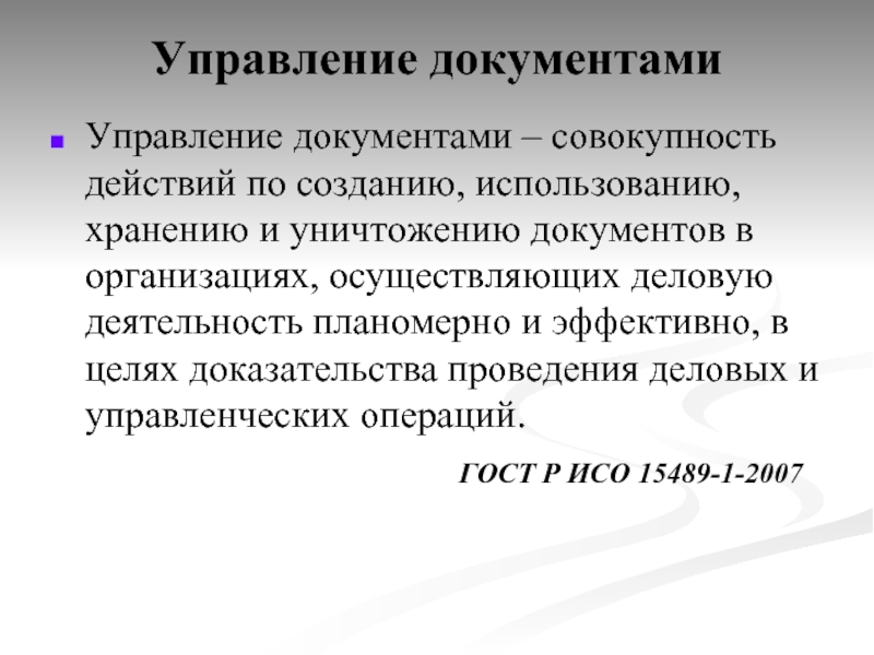 Управление документами – совокупность действий по созданию, использованию, хранению и