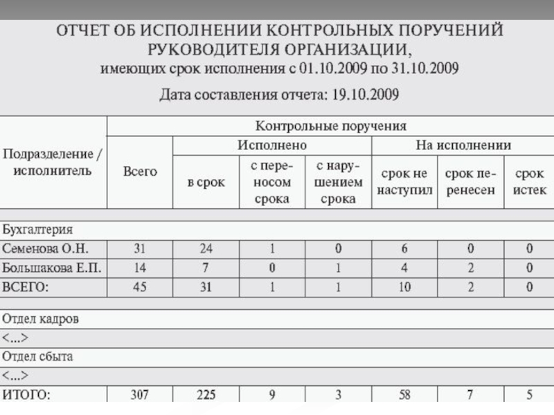 (процент) не выполненных или выполненных позднее установленных сроков;