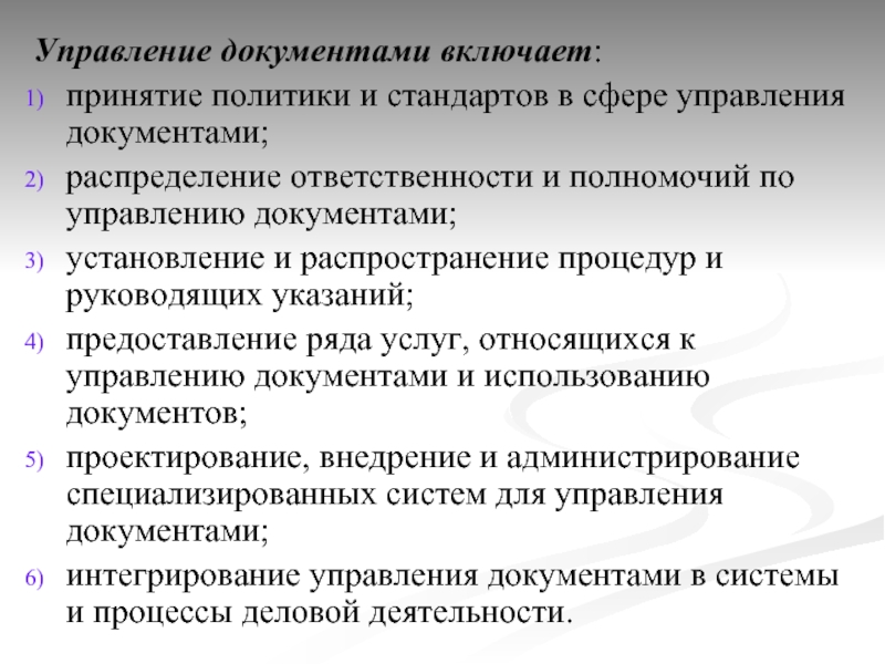 интегрирование управления документами в системы и процессы деловой деятельности.