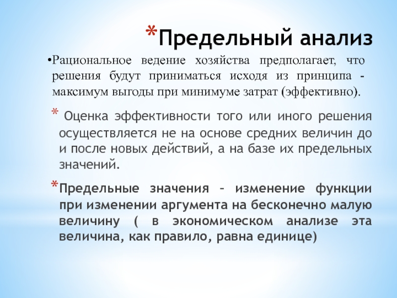 Рациональное ведение хозяйства предполагает, что решения будут приниматься исходя из принципа - максимум выгоды при минимуме затрат (эффективно).