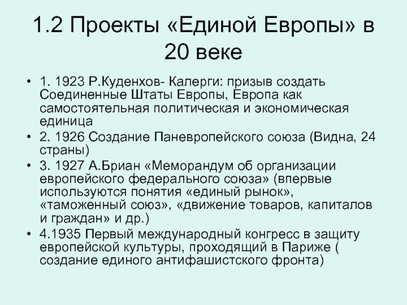 Слайд 81.2 Проекты «Единой Европы» в 20 веке