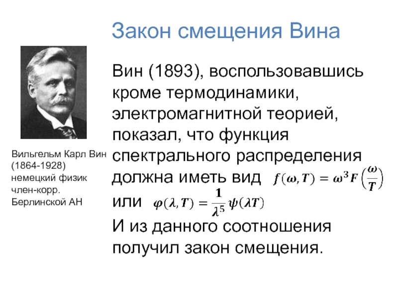 Вильгельм Карл Вин (1864-1928) немецкий физик член-корр. Берлинской АН