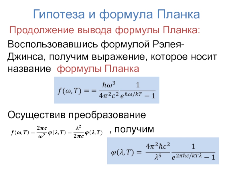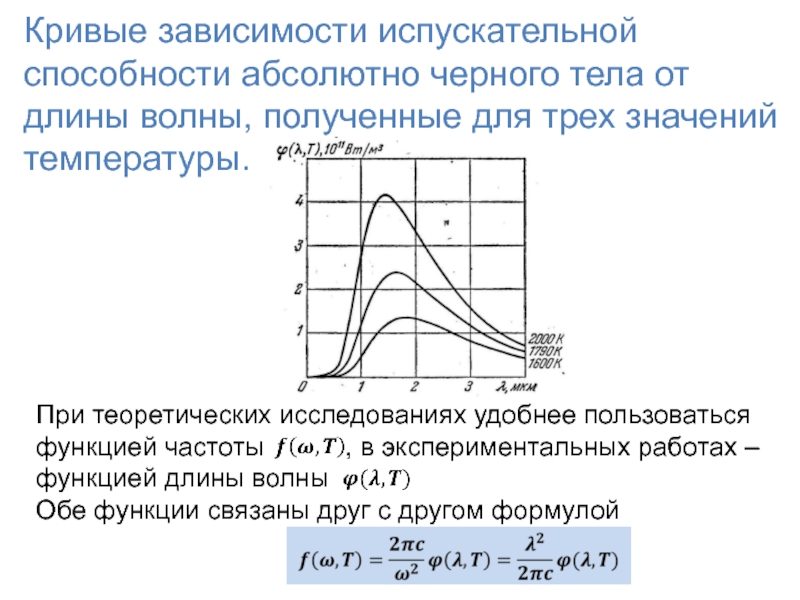 При теоретических исследованиях удобнее пользоваться функцией частоты , в экспериментальных работах – функцией длины волны
