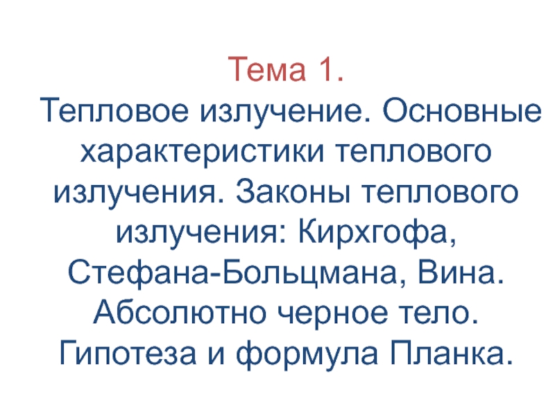 Основные характеристики теплового излучения