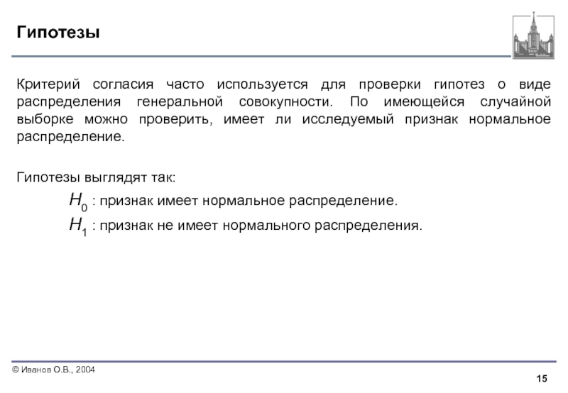 Критерий согласия часто используется для проверки гипотез о виде распределения генеральной