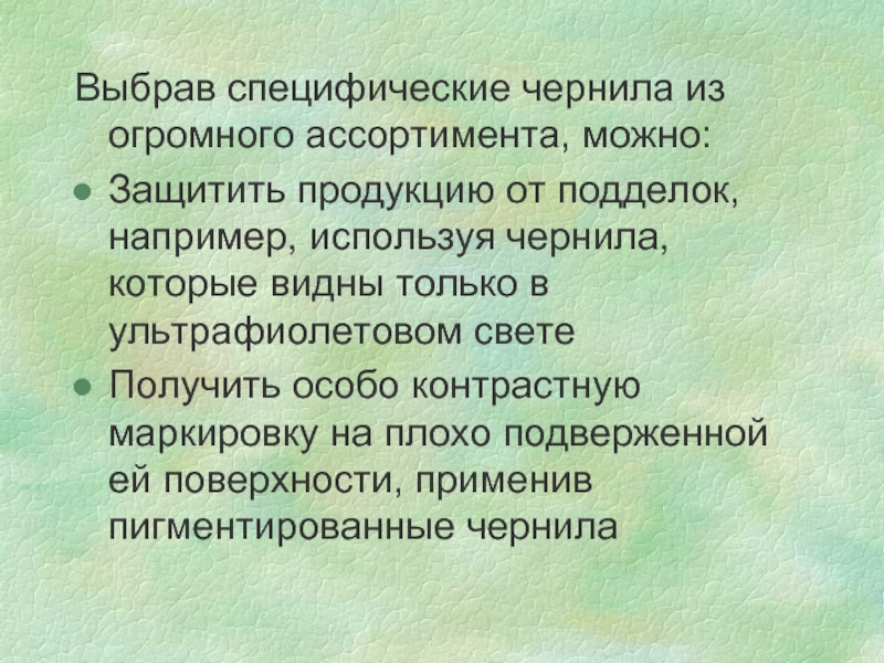 Слайд 9Выбрав специфические чернила из огромного ассортимента, можно: