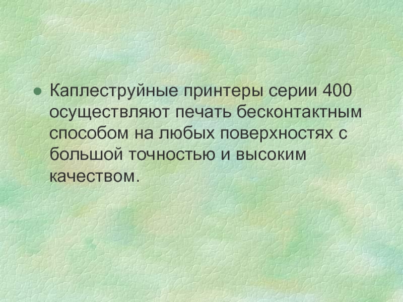 Слайд 8Каплеструйные принтеры серии 400 осуществляют печать бесконтактным способом на любых поверхностях