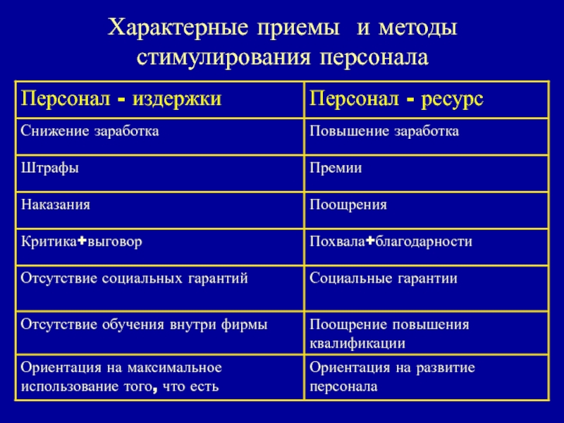 Слайд 3Характерные приемы и методы стимулирования персонала