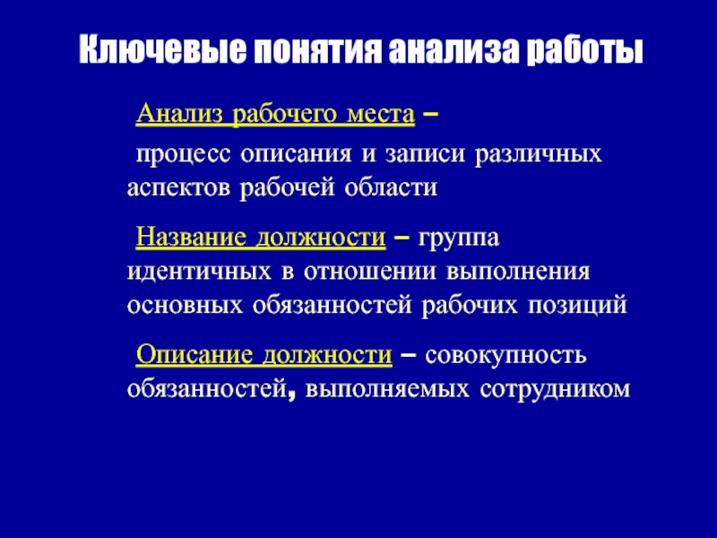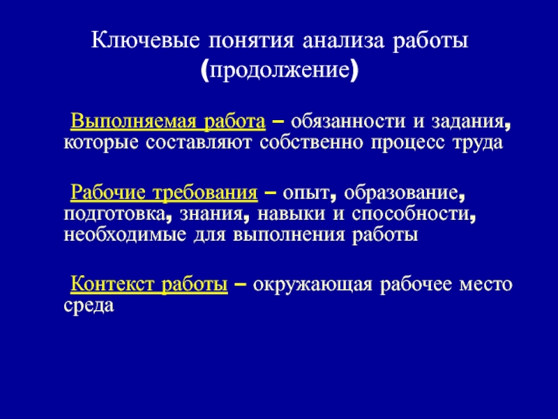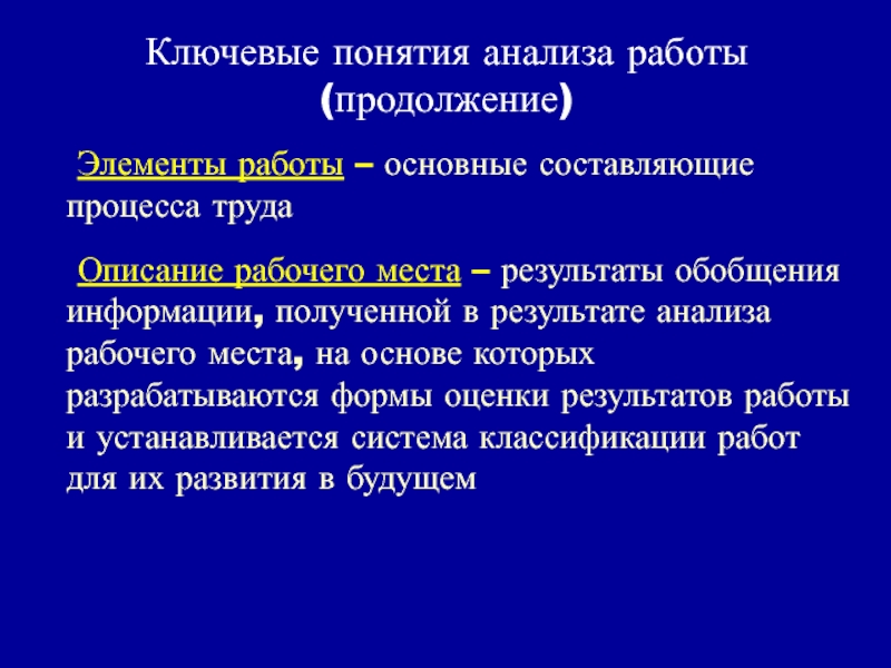 Слайд 10Ключевые понятия анализа работы (продолжение)