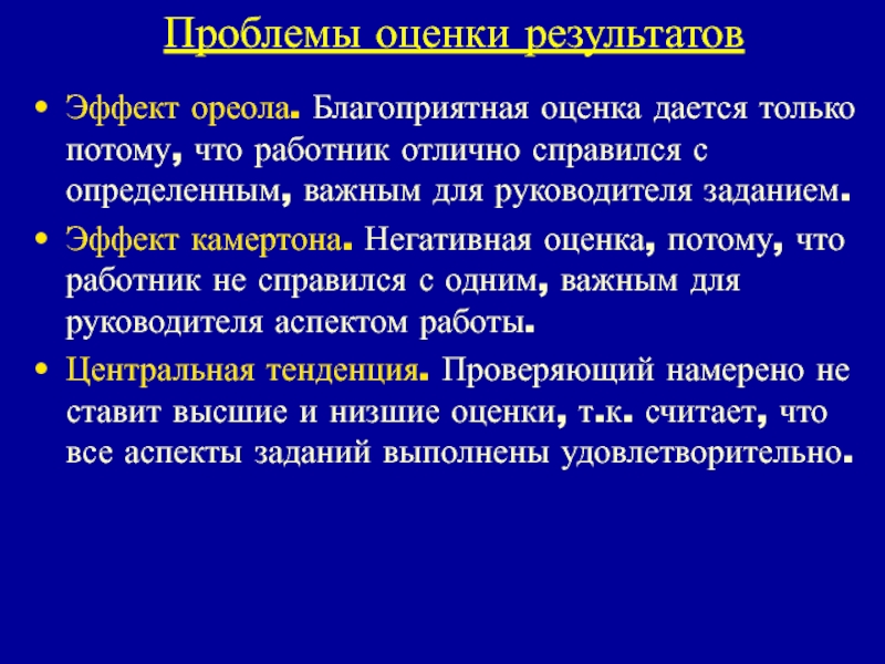 Эффект камертона. Негативная оценка, потому, что работник не справился с одним, важным для руководителя аспектом работы.
