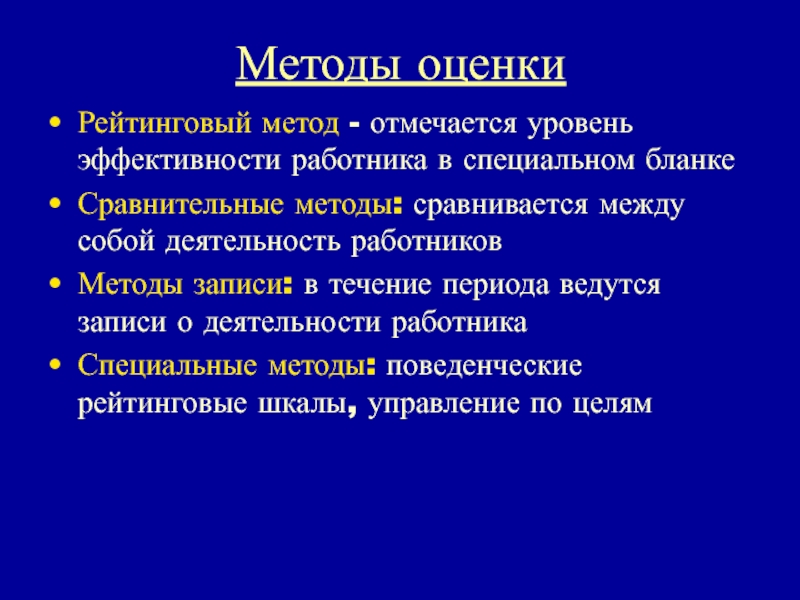Специальные методы: поведенческие рейтинговые шкалы, управление по целям