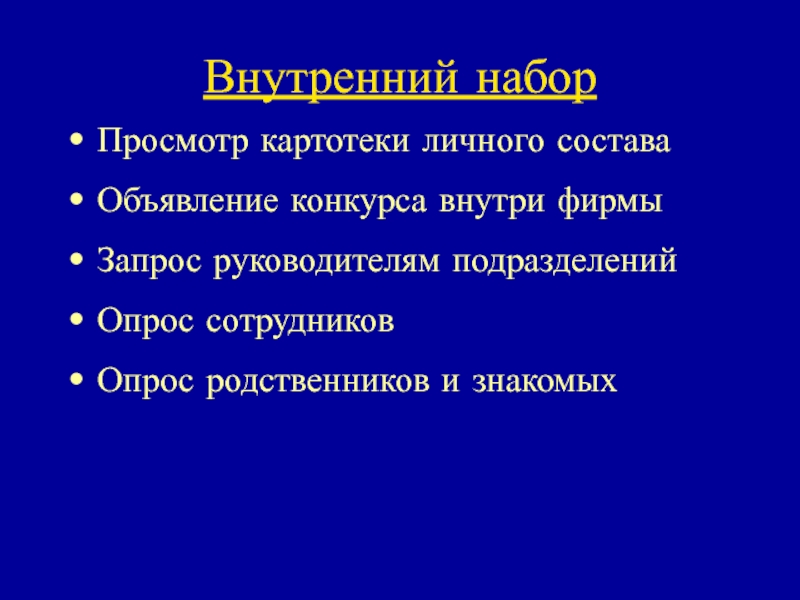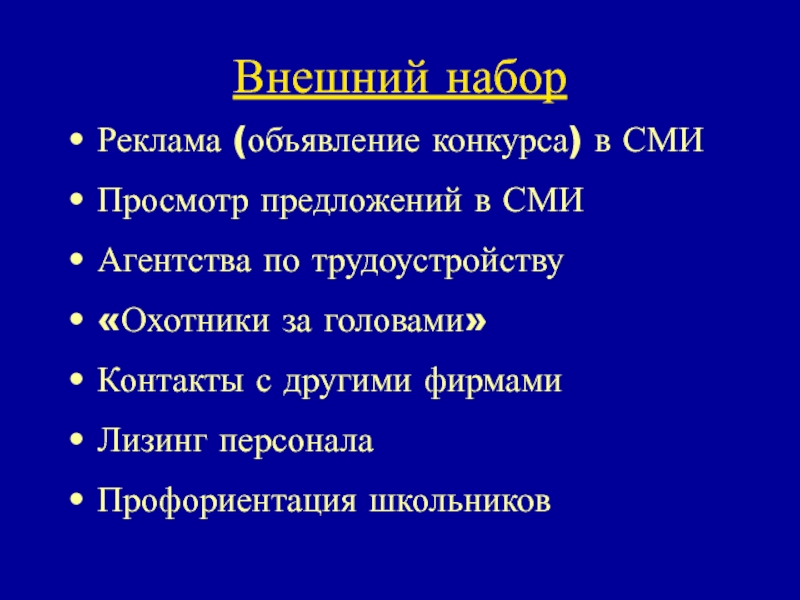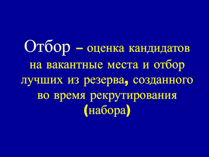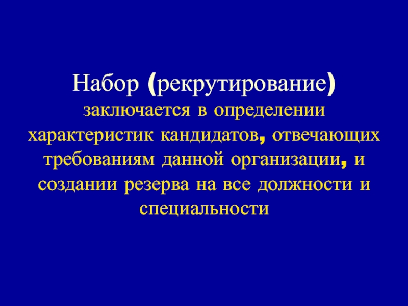 Слайд 15Набор (рекрутирование) заключается в определении характеристик кандидатов, отвечающих требованиям данной организации,