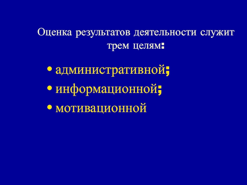Слайд 38Оценка результатов деятельности служит трем целям: