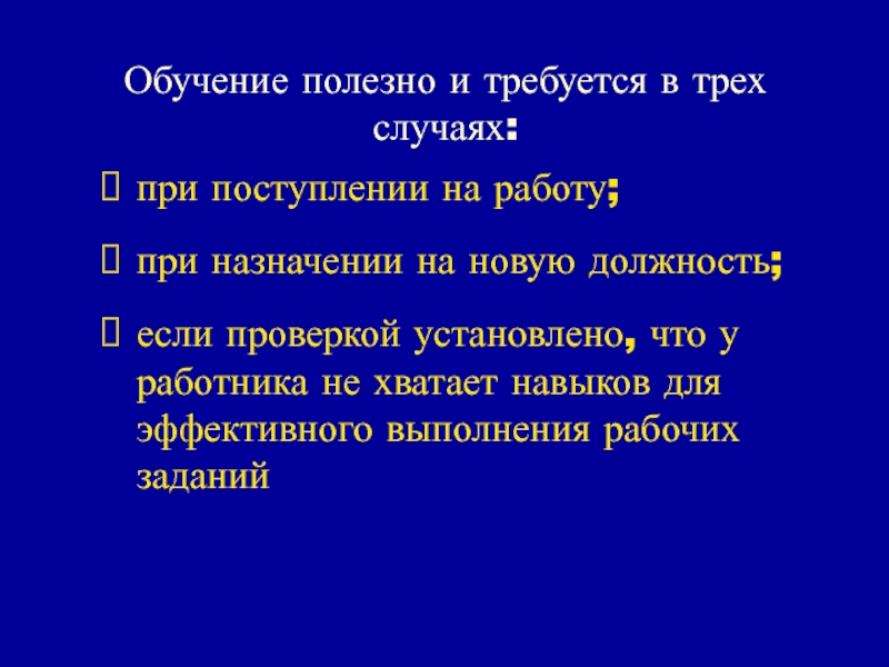 Слайд 35Обучение полезно и требуется в трех случаях: