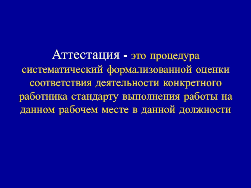 Слайд 39Аттестация - это процедура систематический формализованной оценки соответствия деятельности конкретного работника