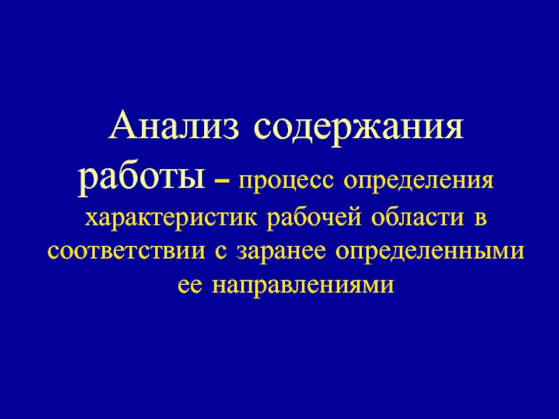 Слайд 7Анализ содержания работы – процесс определения характеристик рабочей области в соответствии
