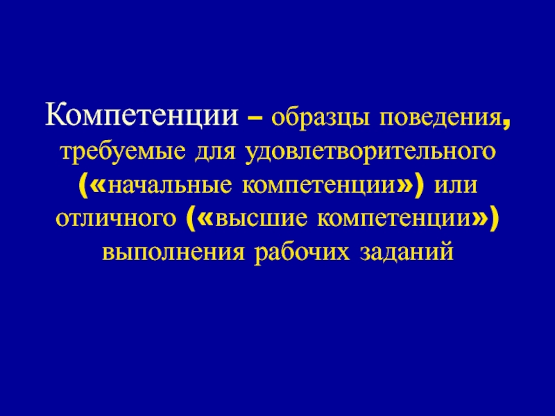 Слайд 11Компетенции – образцы поведения, требуемые для удовлетворительного («начальные компетенции») или отличного