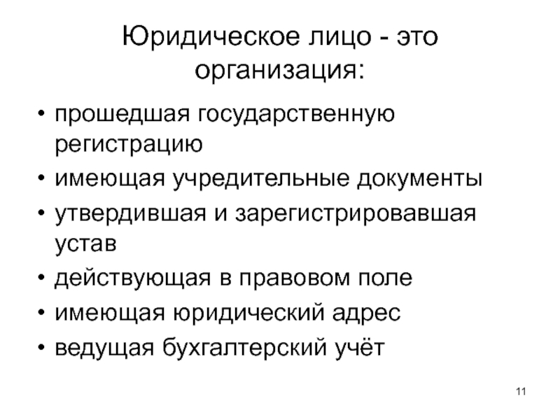Слайд 11Юридическое лицо - это организация: