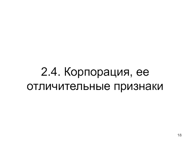 Слайд 182.4. Корпорация, ее отличительные признаки