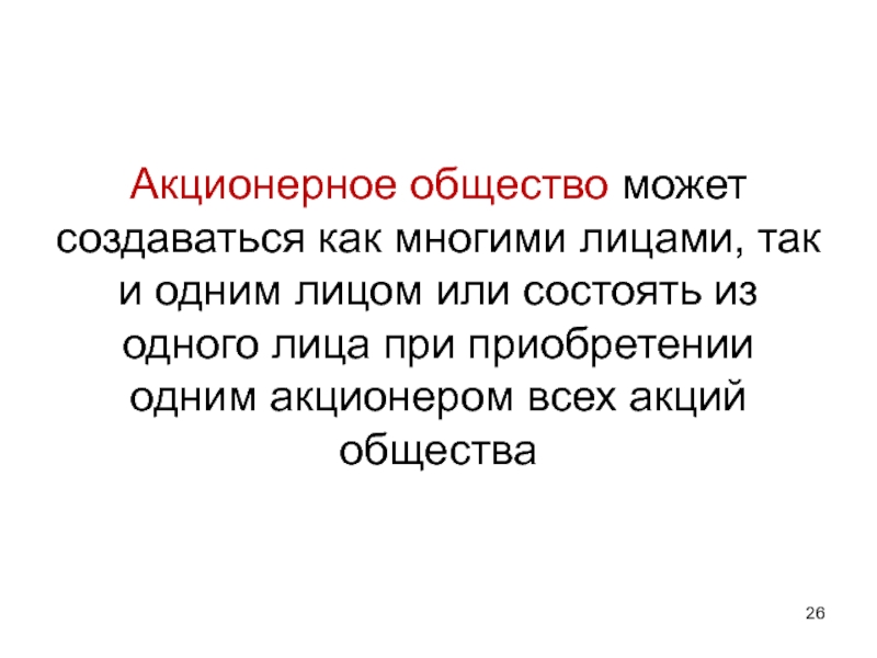 Слайд 26Акционерное общество может создаваться как многими лицами, так и одним лицом