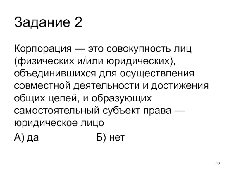 Слайд 19Корпорация — (лат. corporatio — объединение) совокупность лиц (физических и/или юридических),