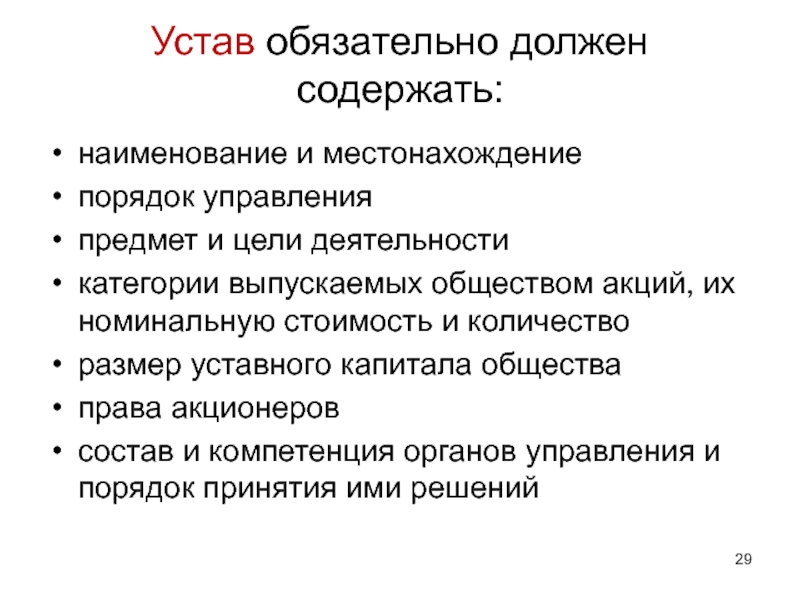 Слайд 29Устав обязательно должен содержать: