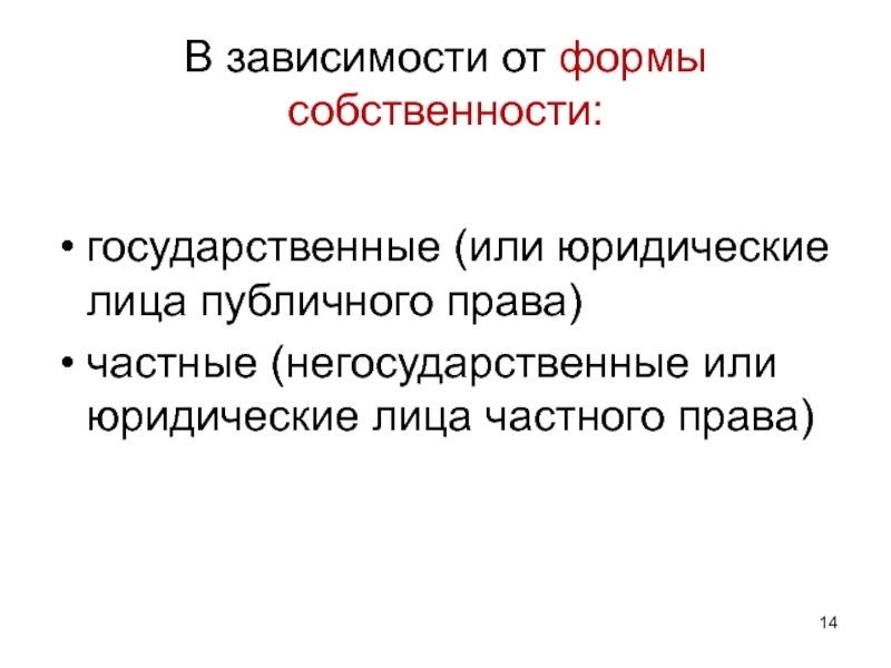 Слайд 14В зависимости от формы собственности: