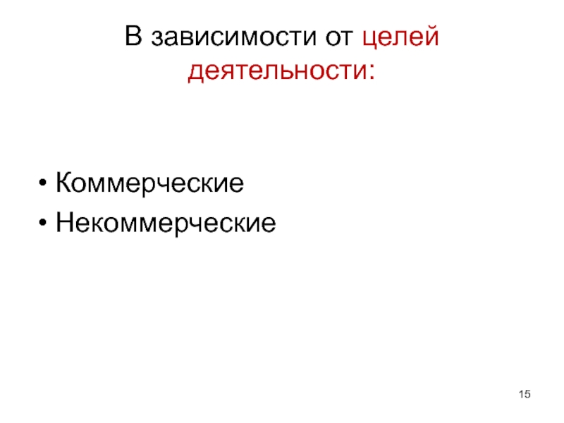 Слайд 15В зависимости от целей деятельности: