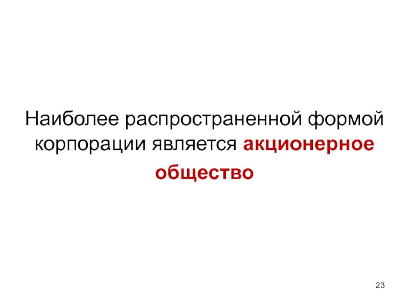 Слайд 23Наиболее распространенной формой корпорации является акционерное общество