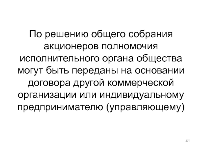 Слайд 41По решению общего собрания акционеров полномочия исполнительного органа общества могут быть