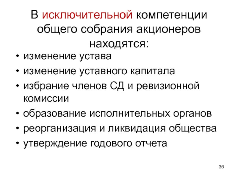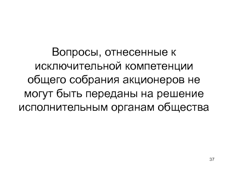 Слайд 37Вопросы, отнесенные к исключительной компетенции общего собрания акционеров не могут быть