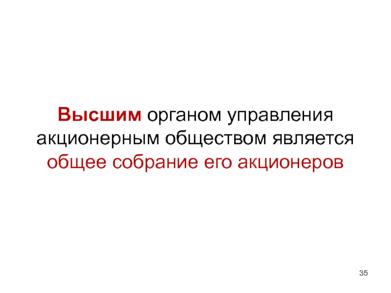 Слайд 35Высшим органом управления акционерным обществом является общее собрание его акционеров
