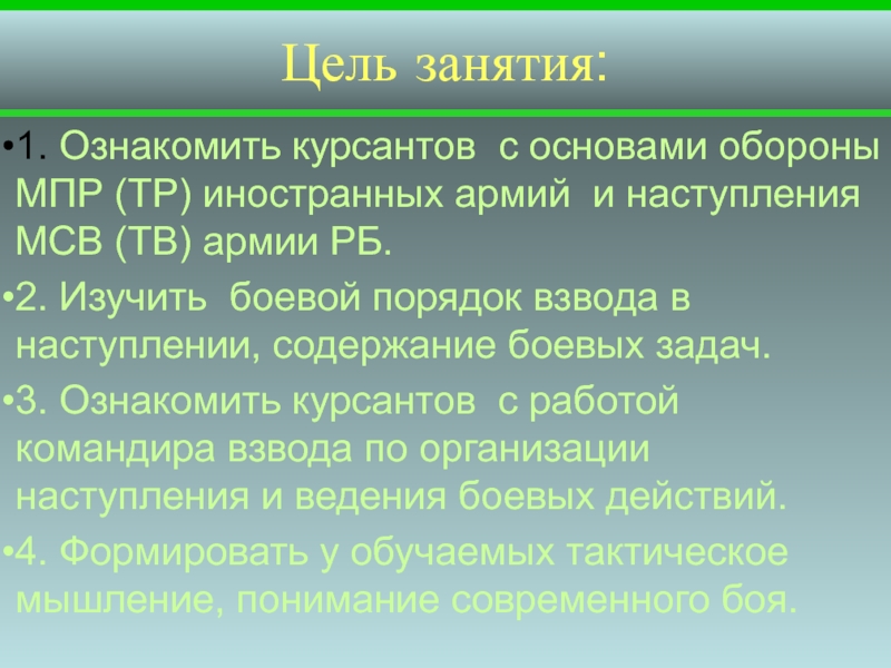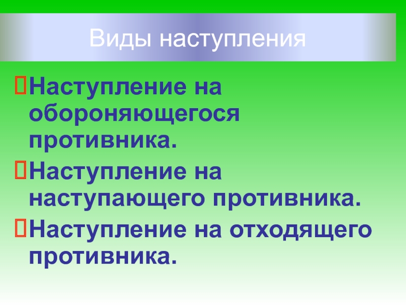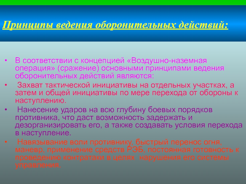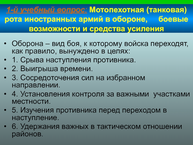 Оборона – вид боя, к которому войска переходят, как правило, вынуждено в целях: