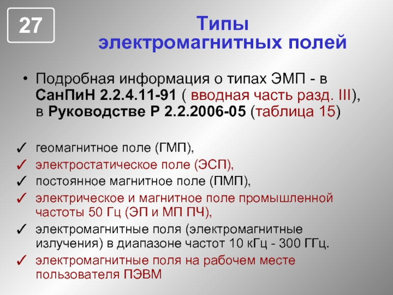полосой в том, что реально на рабочих местах и в ближайшем окружении находится масса технических средств с импульсными блоками питания и импульсными системами управления, которые не имеют никакого отношения к ПЭВМ, но реально создают электрические и магнитные поля в диапазоне частот 5 Гц – 2 кГц