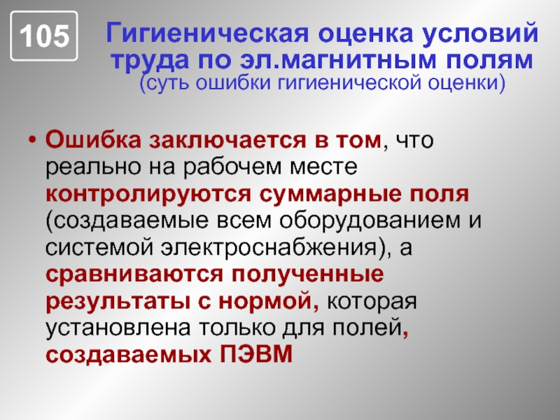 создает массу проблем для правильной гигиенической оценки условий труда