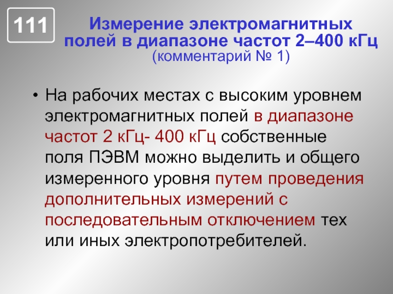 Слайд 111Измерение электромагнитных полей в диапазоне частот 2–400 кГц
