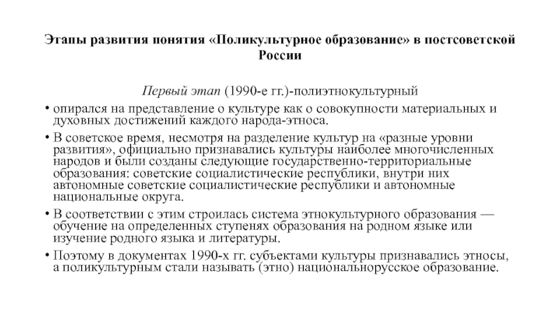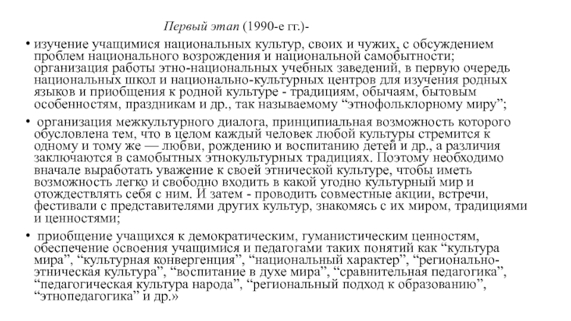 Первый этап (1990-е гг.)-полиэтнокультурный