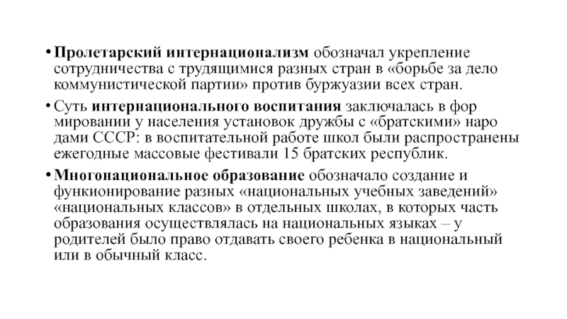 Слайд 3Пролетарский интернационализм обозначал укрепление сотрудничества с трудящимися разных стран в «борьбе
