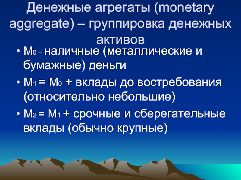 Слайд 9Денежные агрегаты (monetary aggregate) – группировка денежных активов