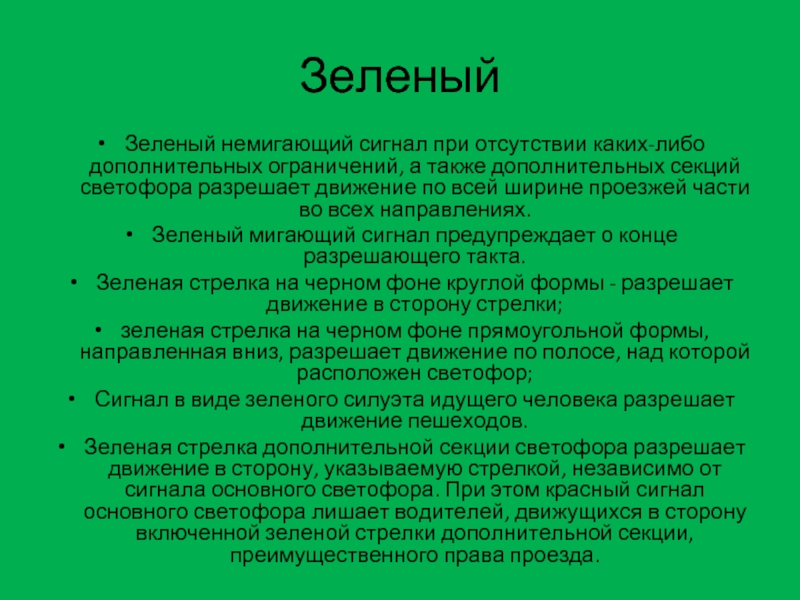 Зеленый немигающий сигнал при отсутствии каких-либо дополнительных ограничений, а также дополнительных