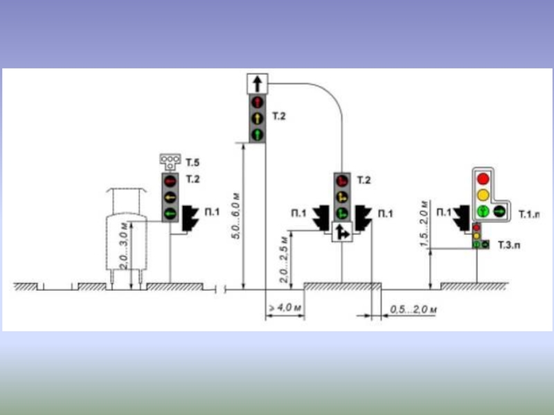 Слайд 26Пример размещения основных и дублирующих транспортных светофоров типа 1