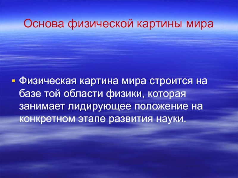 физики, которая занимает лидирующее положение на конкретном этапе развития науки.