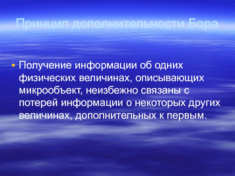 неизбежно связаны с потерей информации о некоторых других величинах, дополнительных к первым.