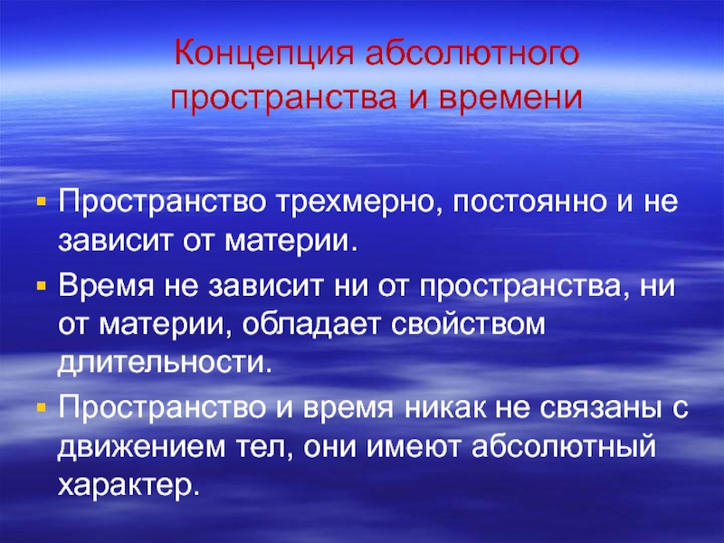 Пространство и время никак не связаны с движением тел, они имеют абсолютный характер.