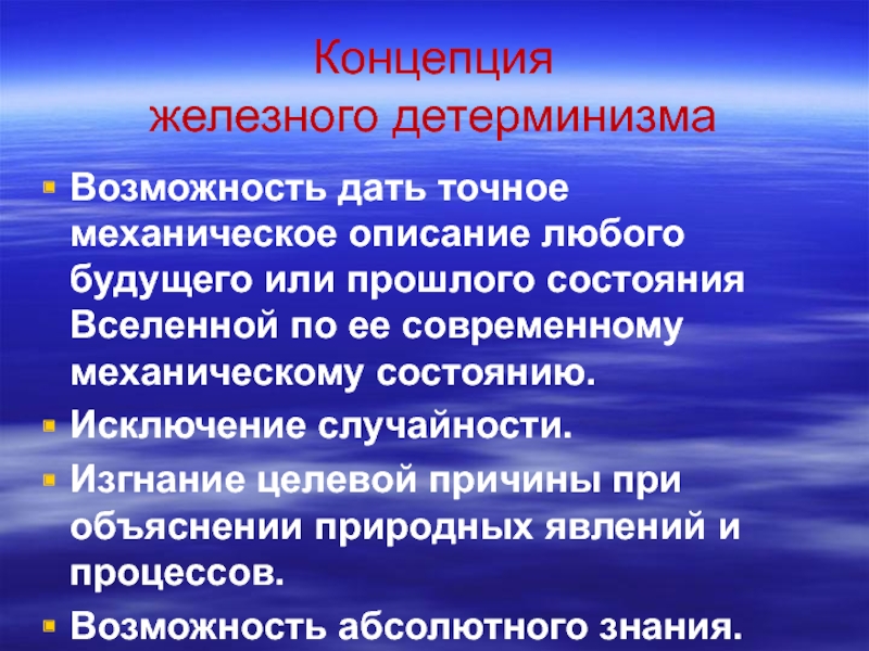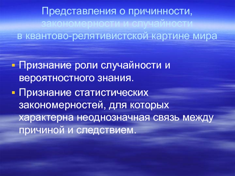 Признание статистических закономерностей, для которых характерна неоднозначная связь между причиной и следствием.